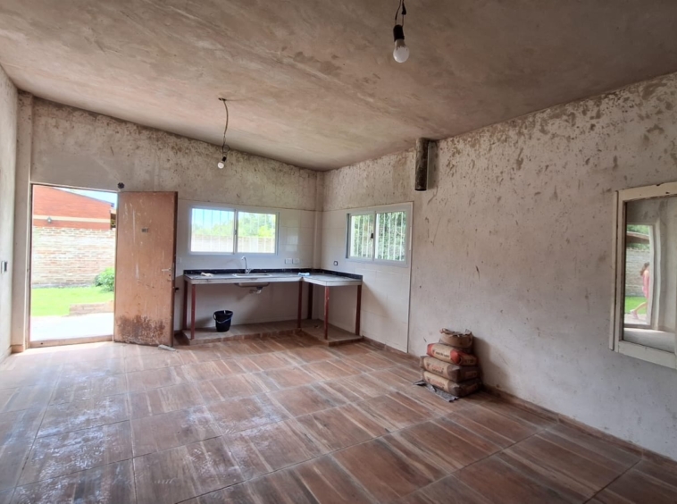 El lote posee 1346 m² y con una construcción de 118 m² aproximadamente, cuenta con un living/comedor, dos habitaciones, un baño completo y un lavadero cerrado.