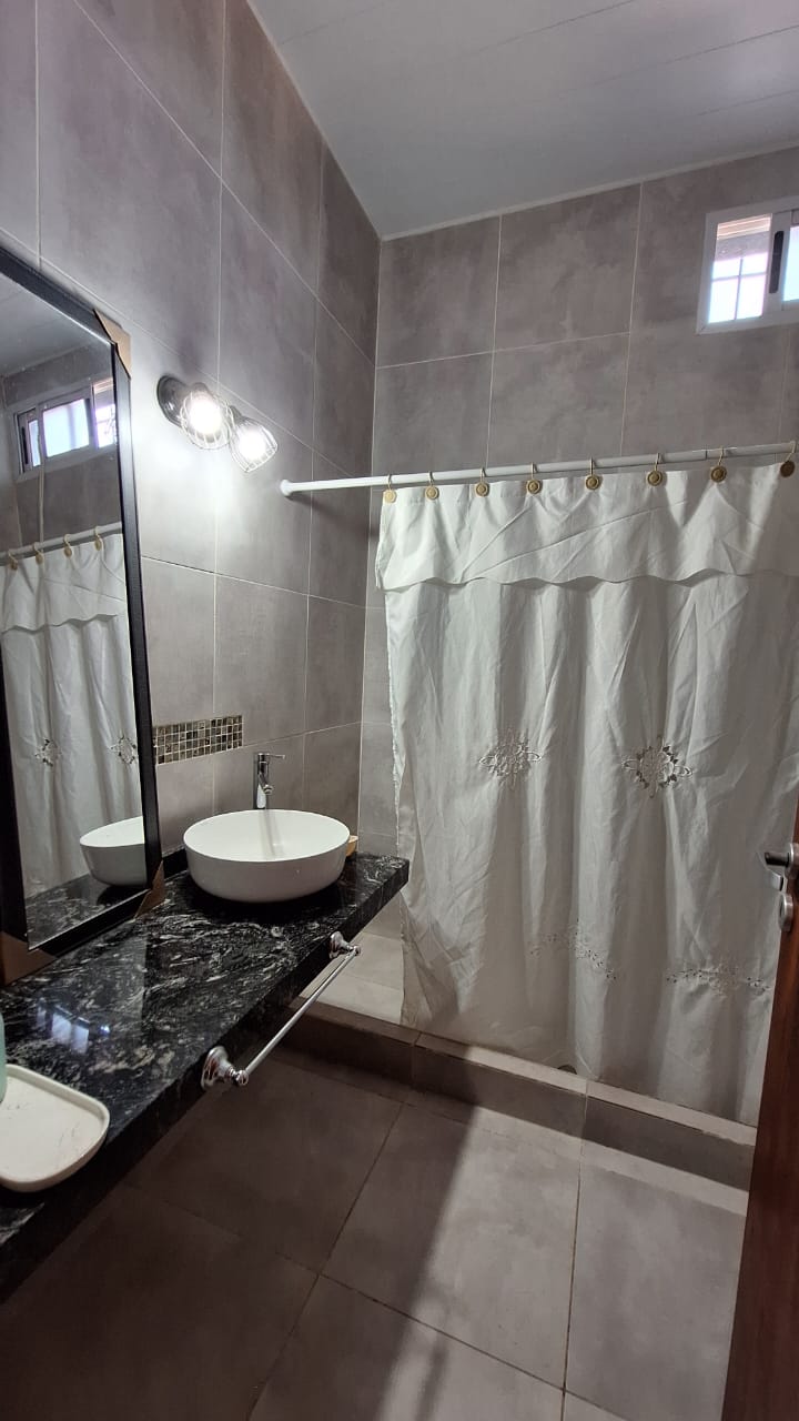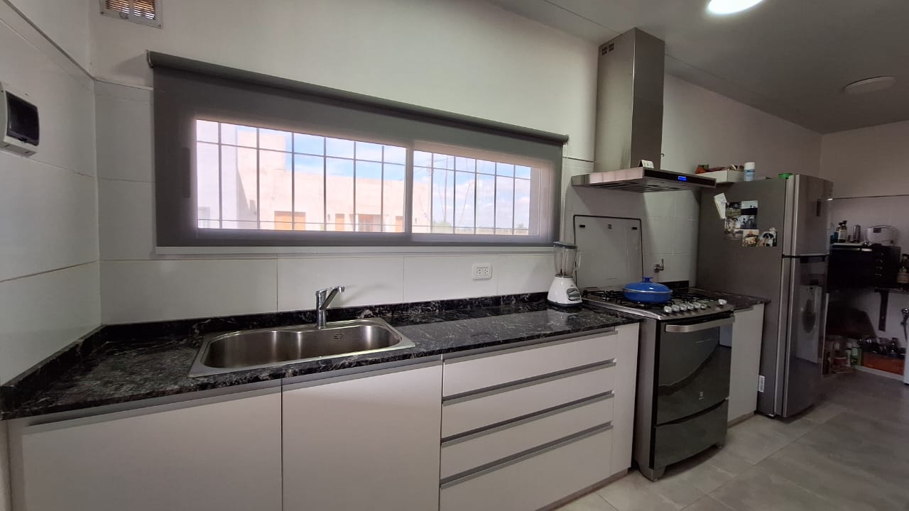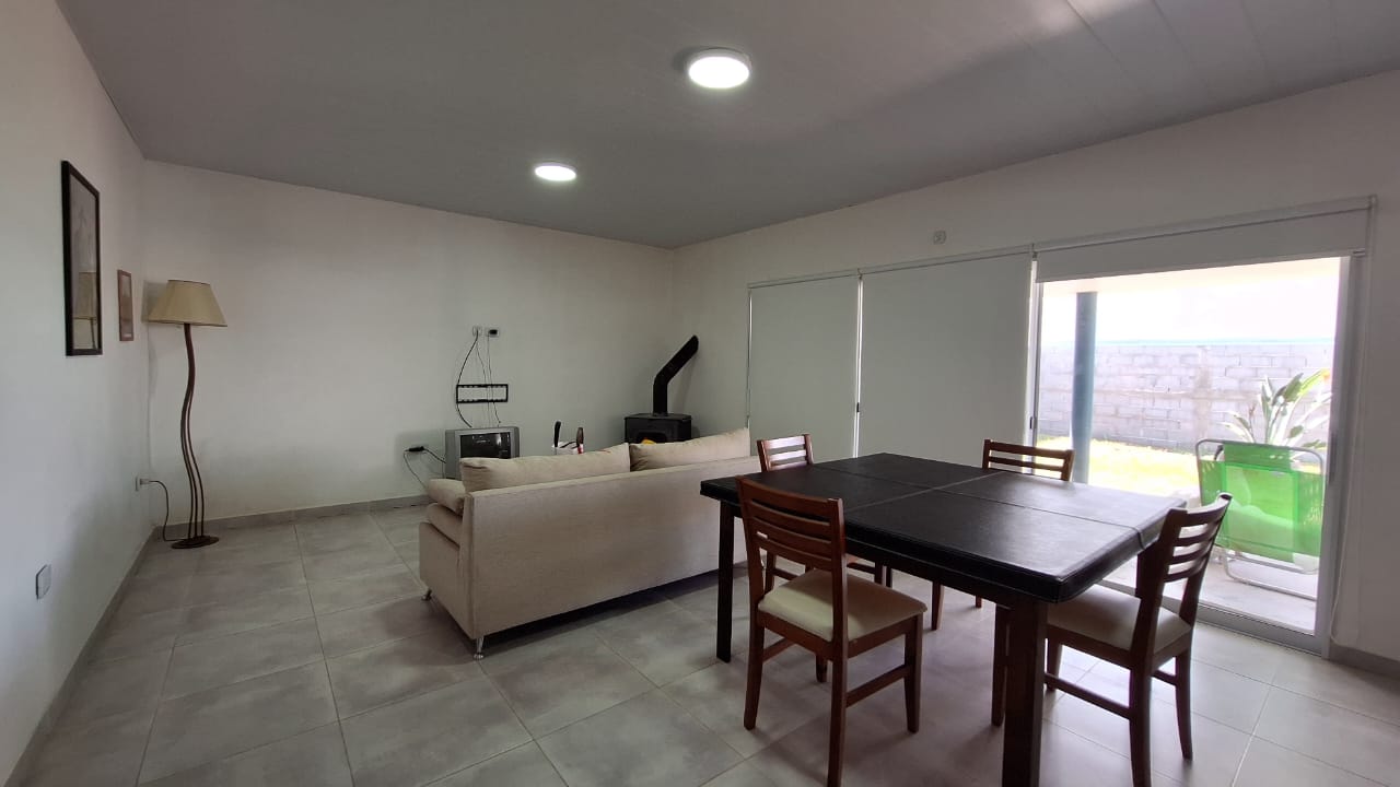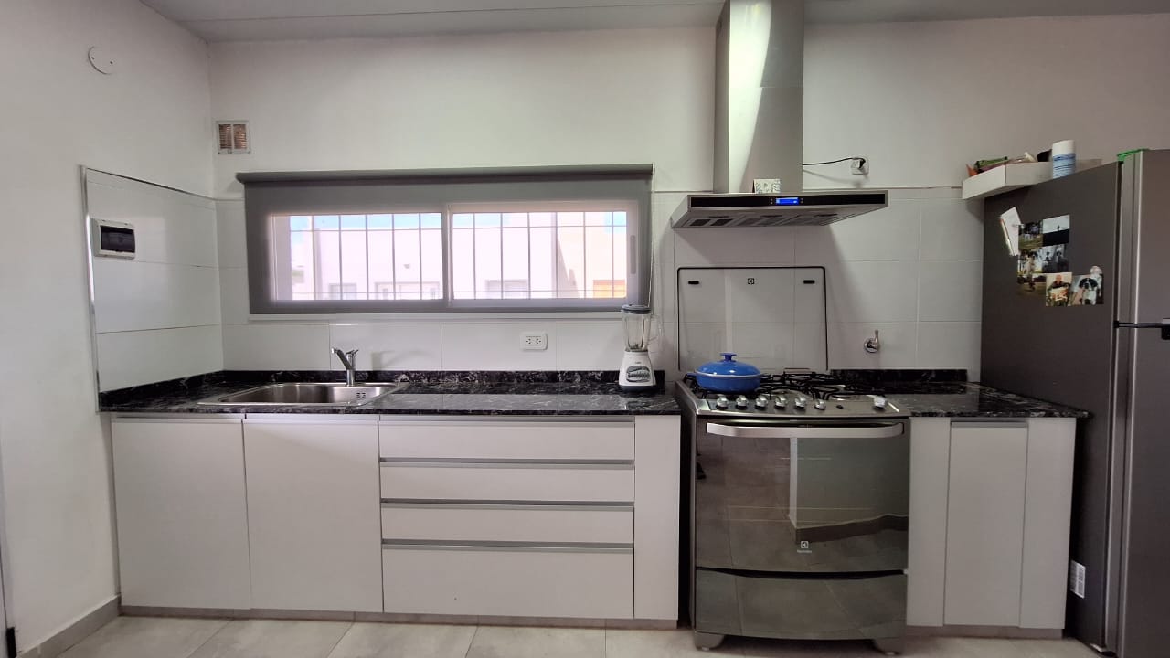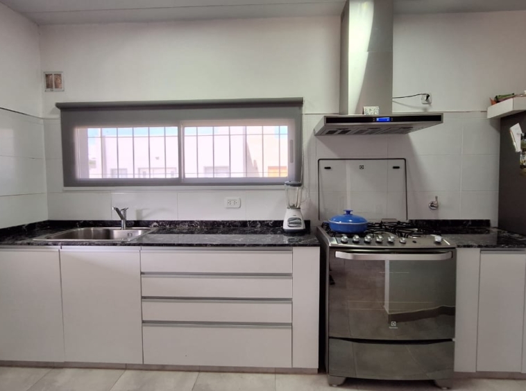 En la cocina se destaca su bajo mesada de buena calidad y su horno a medida de acero inoxidable. Posee una parte de lavadero con su bacha con bajo mesada y termo eléctrico. Además, cuenta con dos habitaciones y un baño completo. En el exterior hay una cochera semicubierta, con parrilla y bacha. La casa es calefaccionada en living por estufa a leña y el cuarto por aire acondicionado frio/calor.