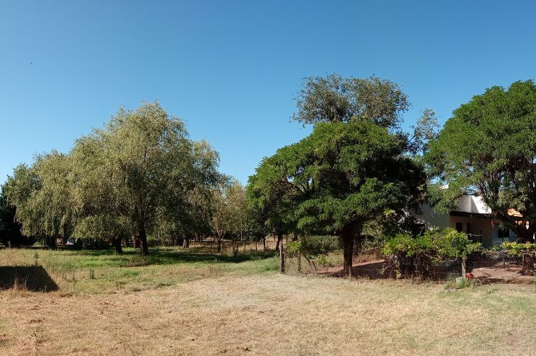 Patio amplio con verde, cercado y forestado todo su perímetro. –