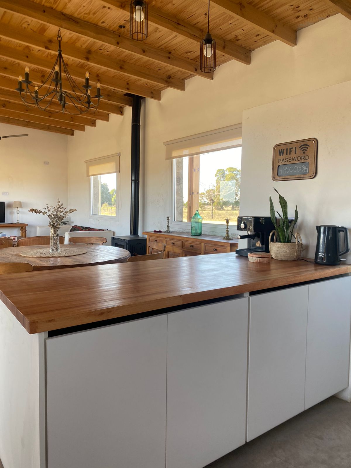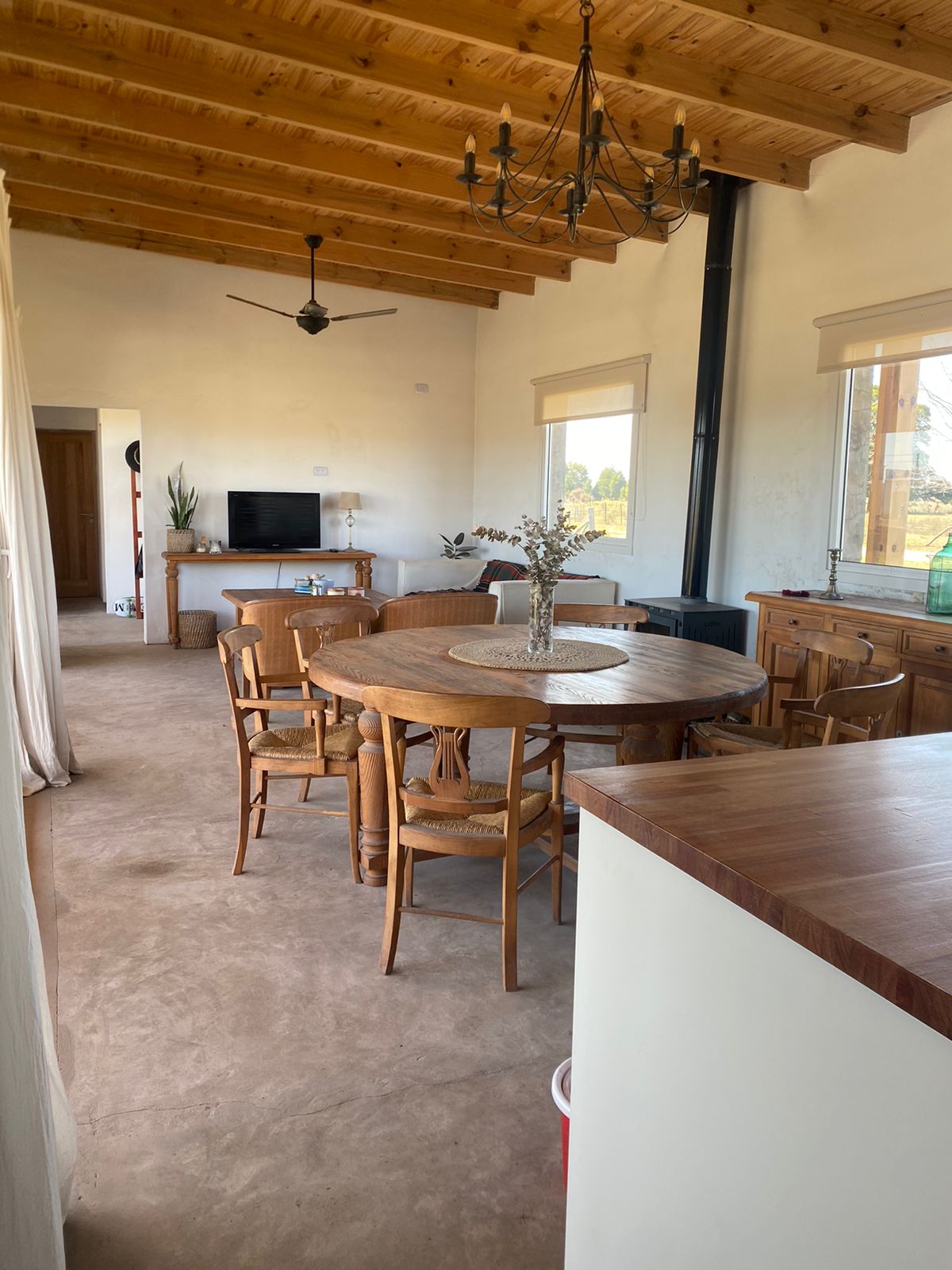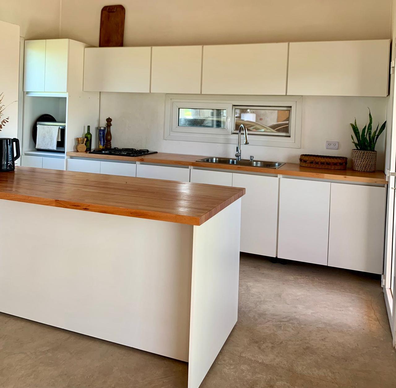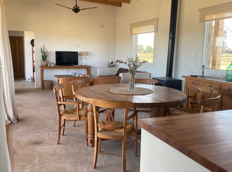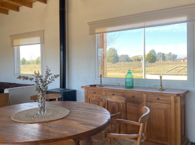 Cuenta con amplia cocina totalmente equipada con alacena y bajo mesada, una barra muy amplia con bajo mesada qué está integrada el comedor y el living, este sector se calefaccionada con una salamandra leppen.
