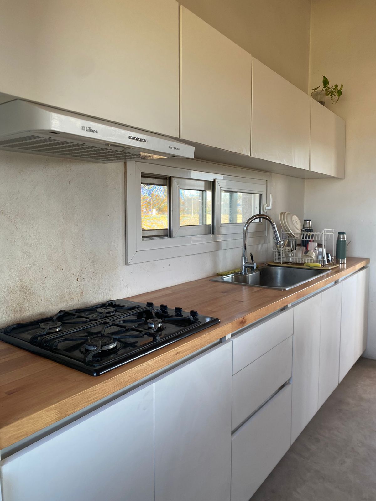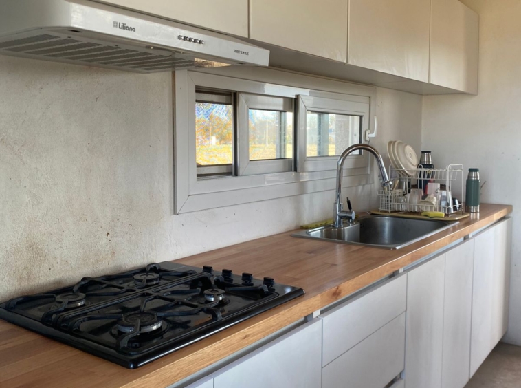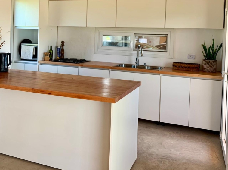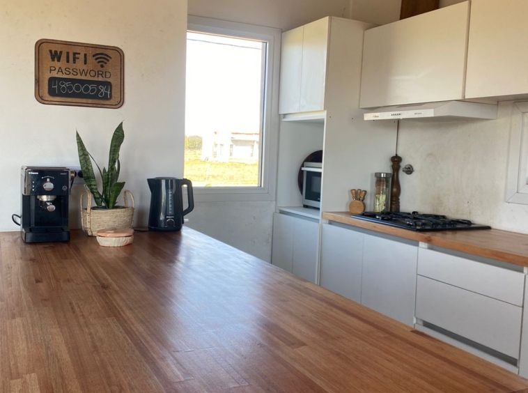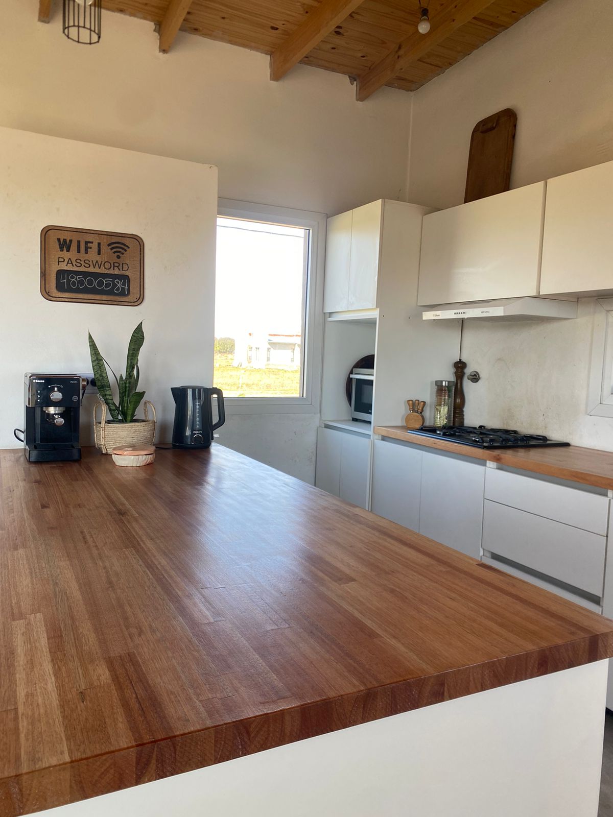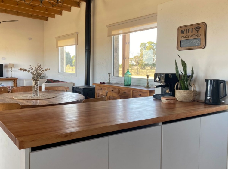 Cuenta con amplia cocina totalmente equipada con alacena y bajo mesada, una barra muy amplia con bajo mesada qué está integrada el comedor y el living, este sector se calefaccionada con una salamandra leppen.