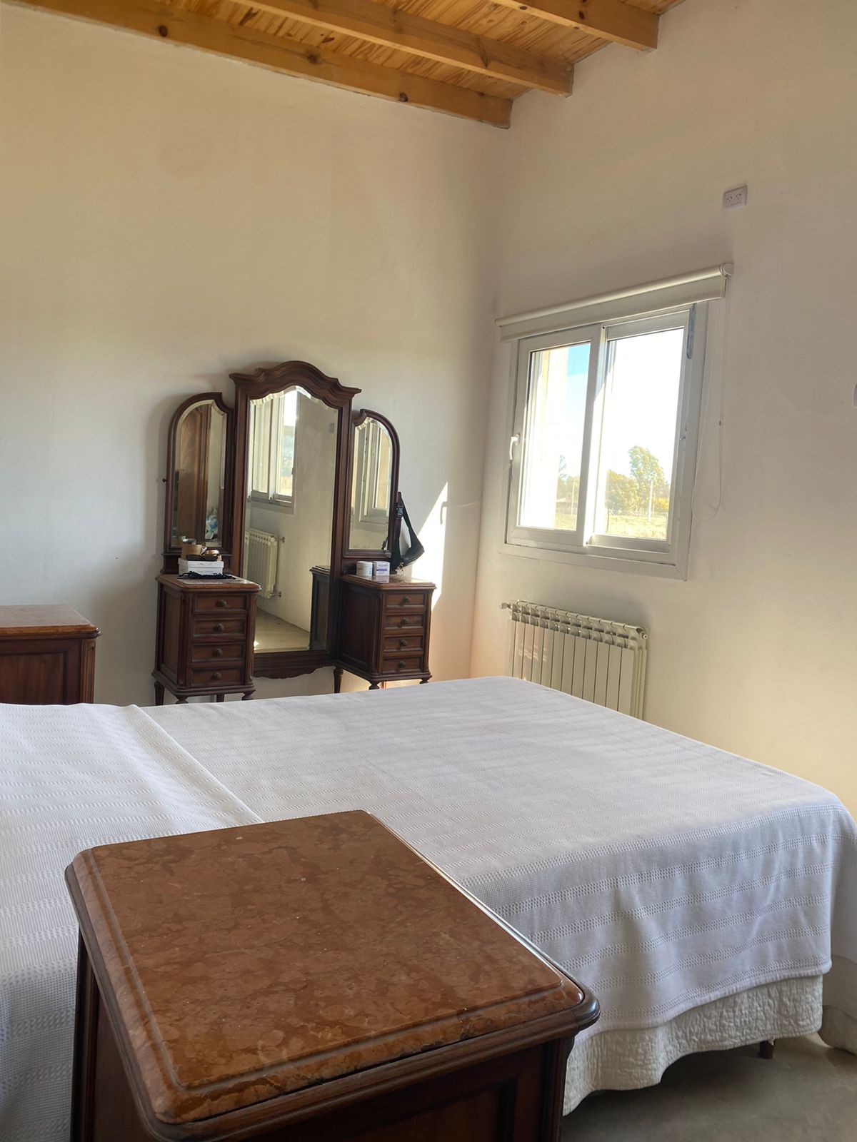 A la derecha de la entrada principal contamos con un toilette calefaccionado con radiador y luego la puerta a la parte privada, con pasillo distribuidor. Contamos con 2 dormitorios, baño completo, lavadero y tendedero y al final del pasillo dormitorio en suite con vestidor, todos los ambientes con radiadores.