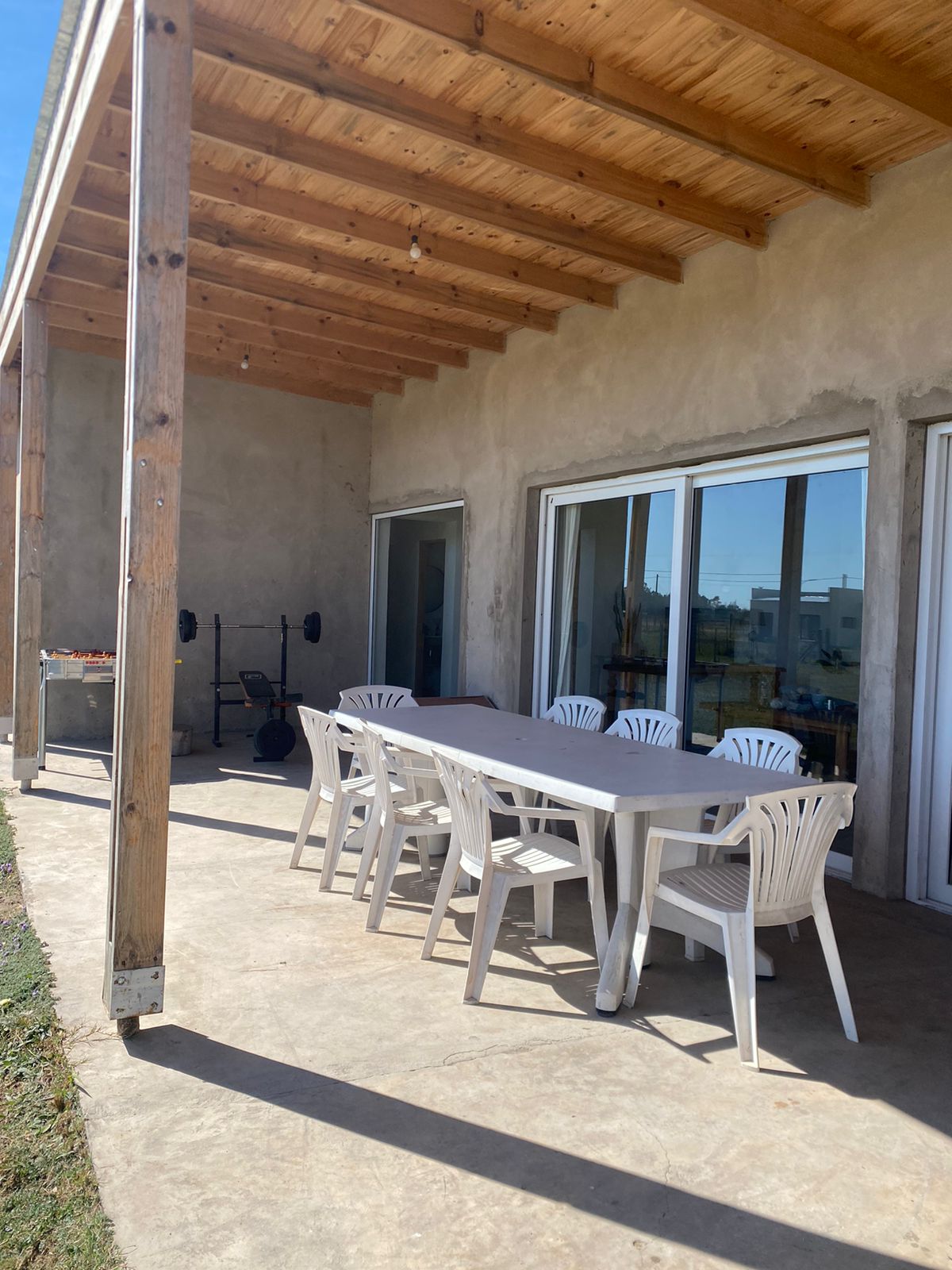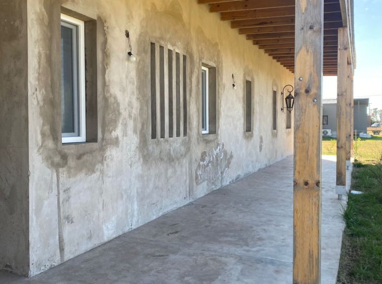 La casa en su exterior cuenta con dos galerías una al frente y la otra trasera con parrilla y barra con bacha.