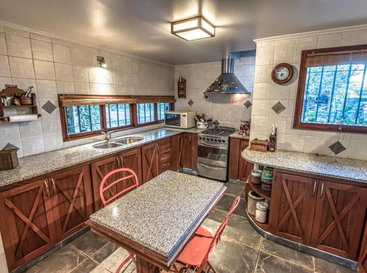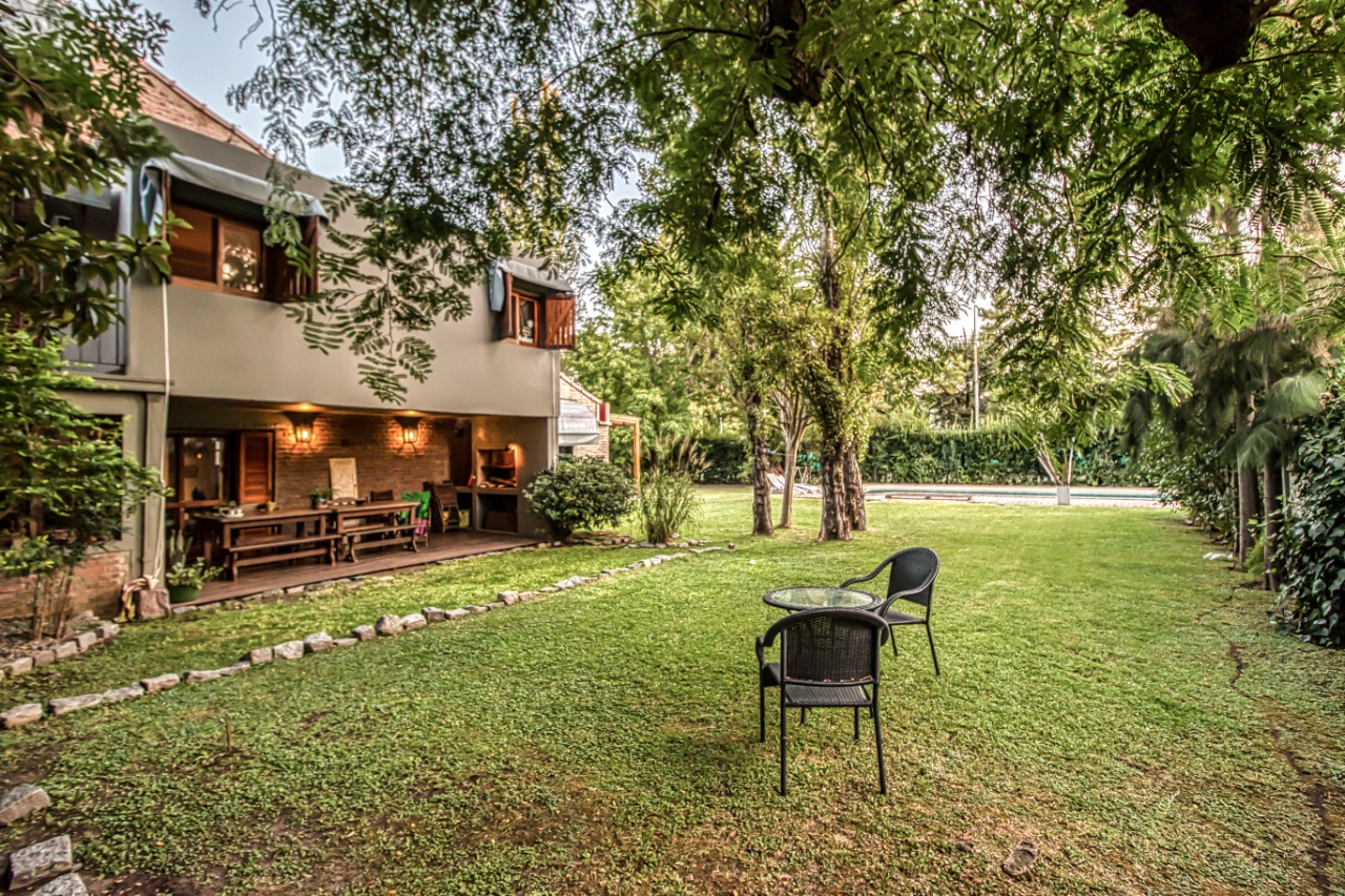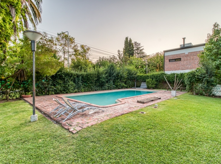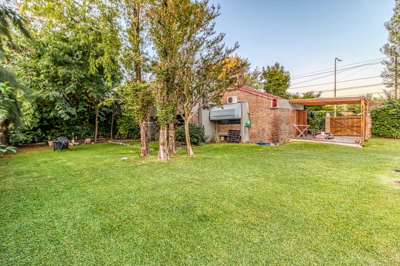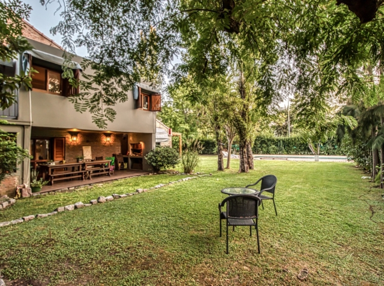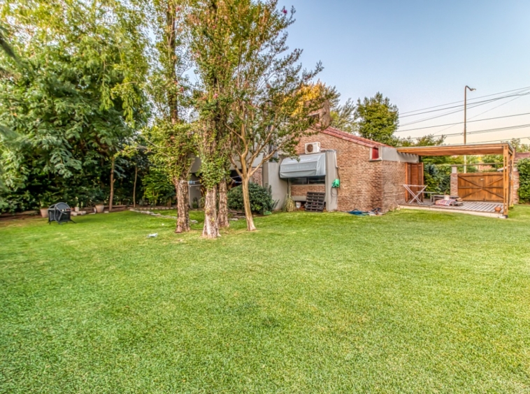 – Exterior: Quincho completo con mesa, sillas, parrilla; pileta de 12x6mts con equipo de mantenimiento completo, parque y arboleda. Garage para vehículos.