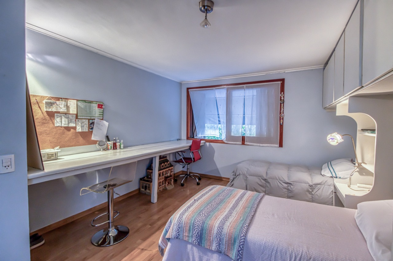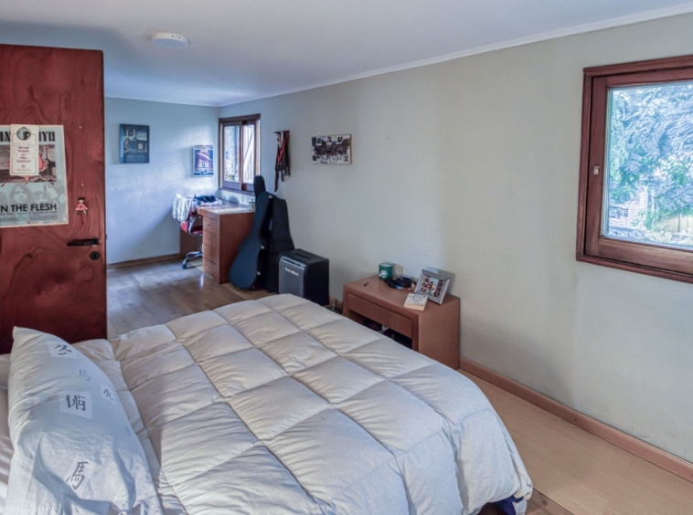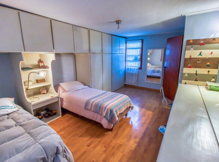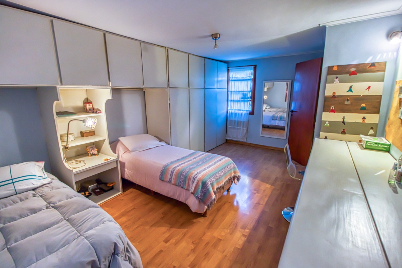 – Planta alta: tres dormitorios con espacio para un cuarto más, cada uno de ellos con placares empotrados hechos a medida; el principal en suite más terraza propia con vista al parque. Todas las habitaciones cuentan con ventilación y luz natural junto con equipos de aire acondicionado frío/calor.