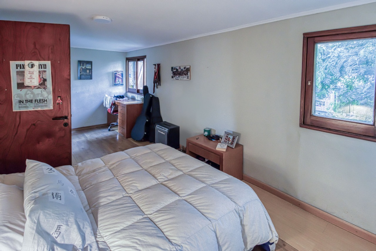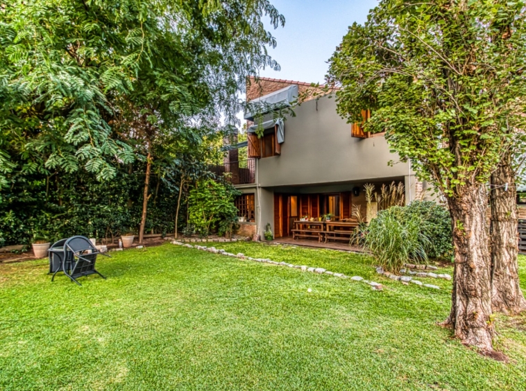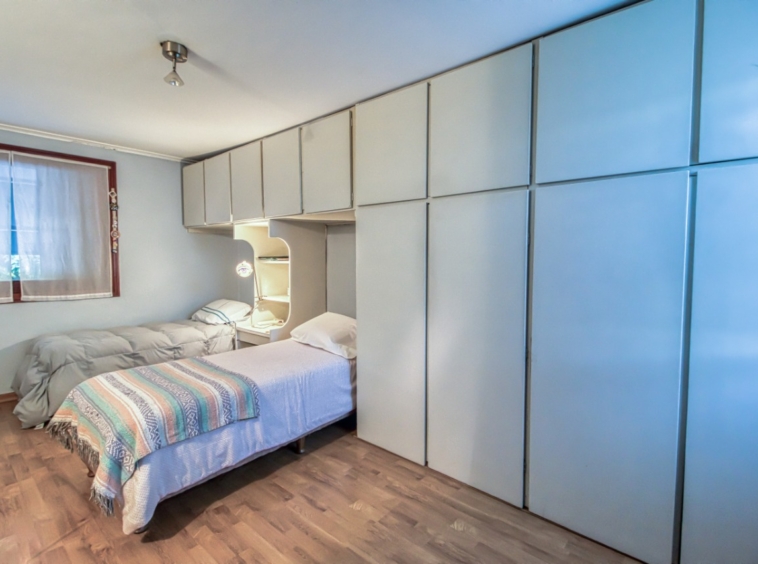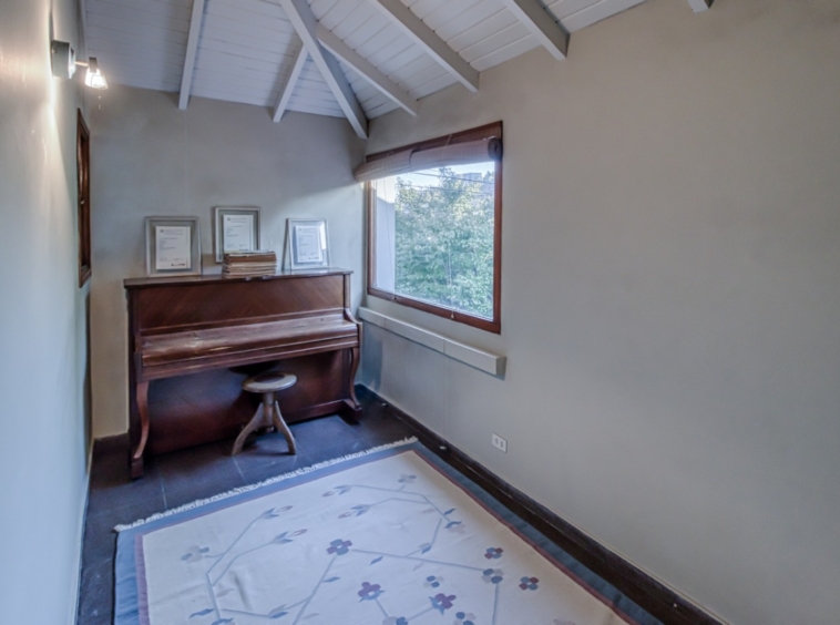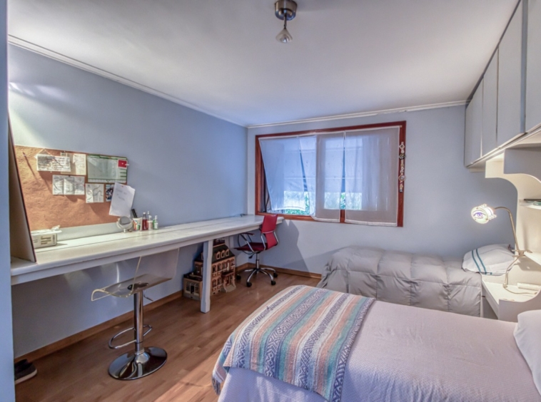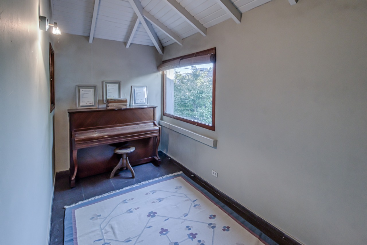 – Planta alta: tres dormitorios con espacio para un cuarto más, cada uno de ellos con placares empotrados hechos a medida; el principal en suite más terraza propia con vista al parque. Todas las habitaciones cuentan con ventilación y luz natural junto con equipos de aire acondicionado frío/calor.