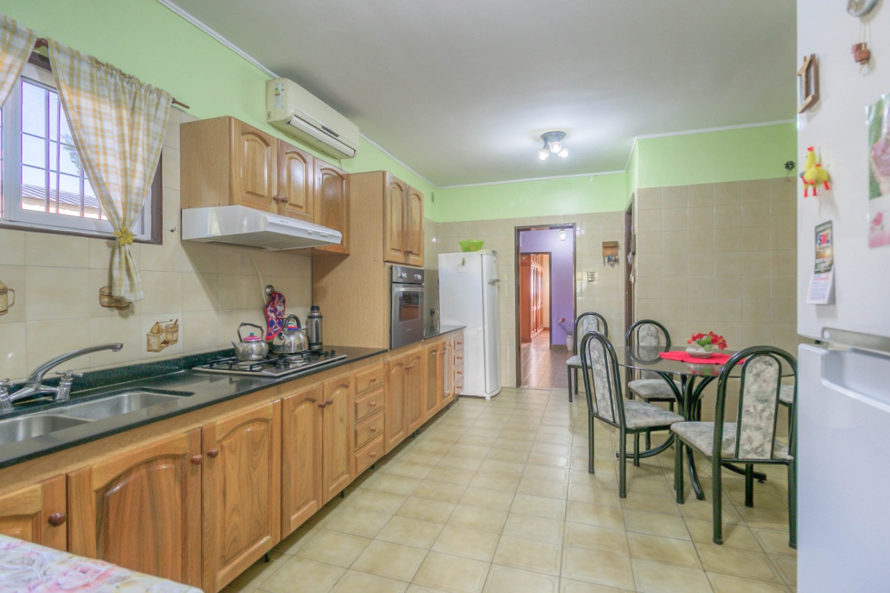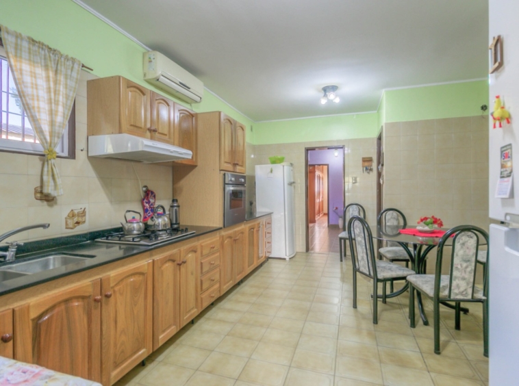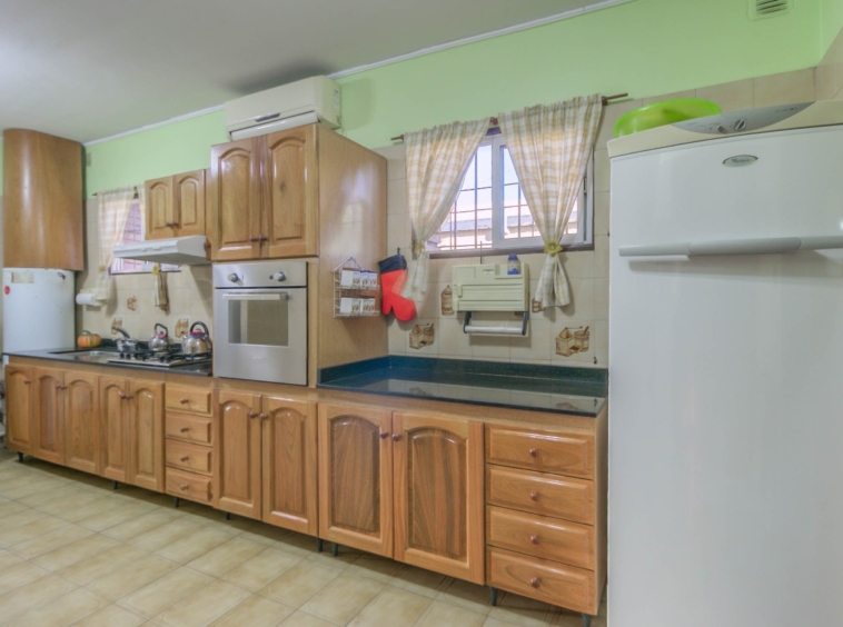 Cocina separada con muebles sobre y bajo mesada, anafe y horno empotrado; acceso al sótano utilizado como depósito de mercaderías.