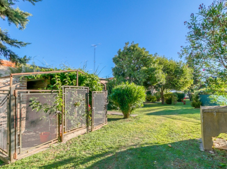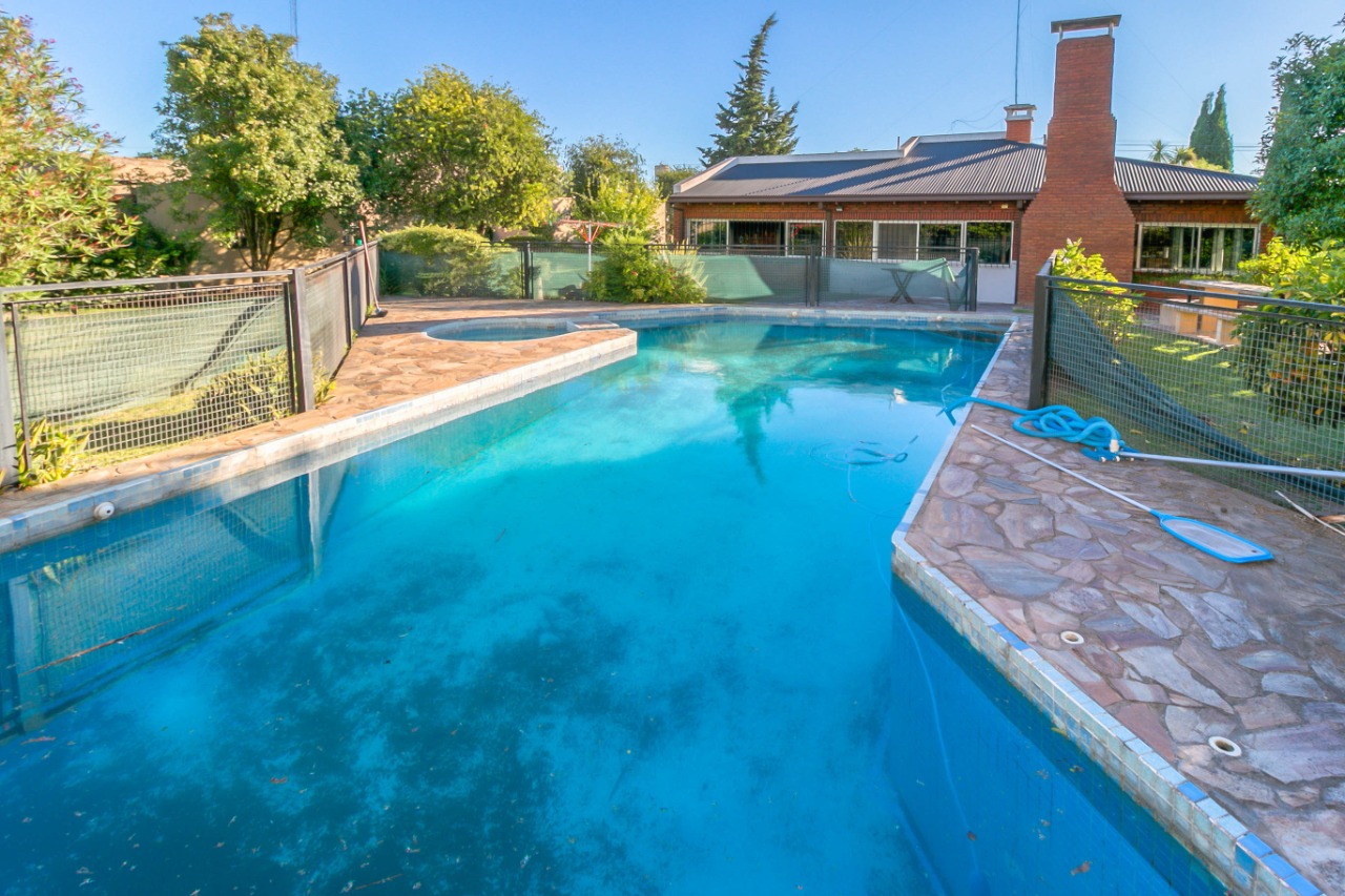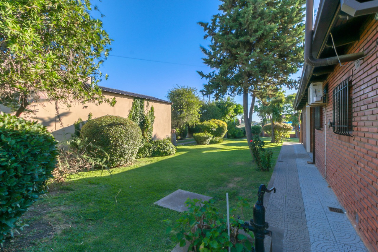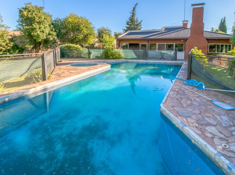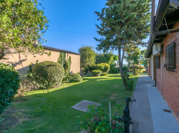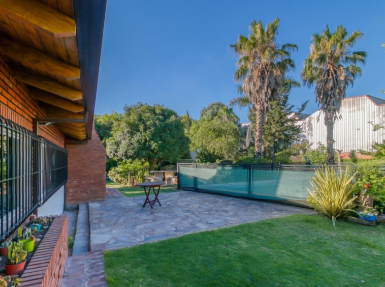 En el exterior dispone de pileta con cerco de seguridad, terreno con diversidad de arbustos y plantas; garage para vehículos o depósito.