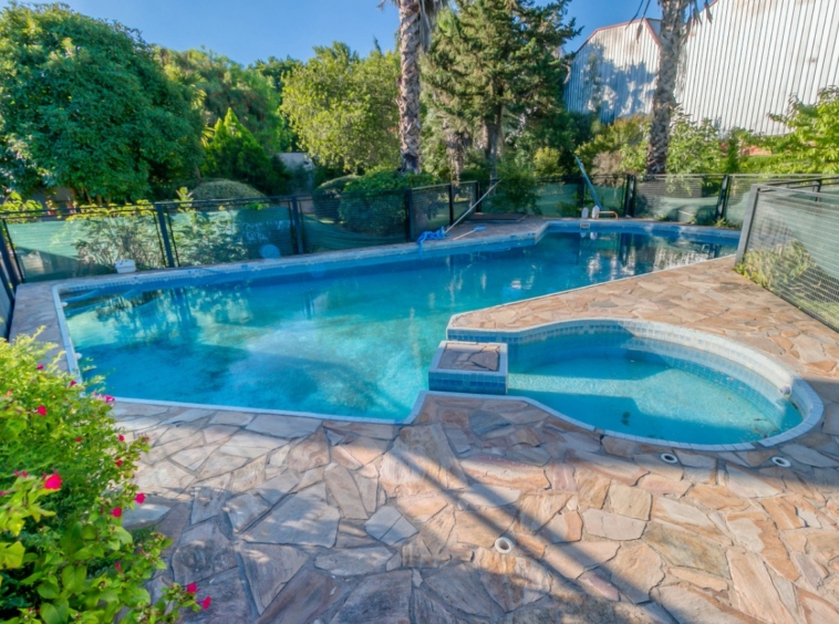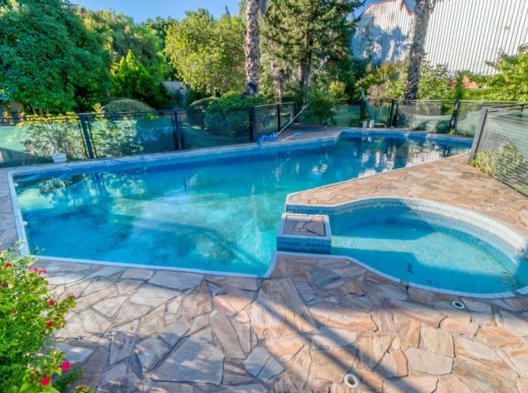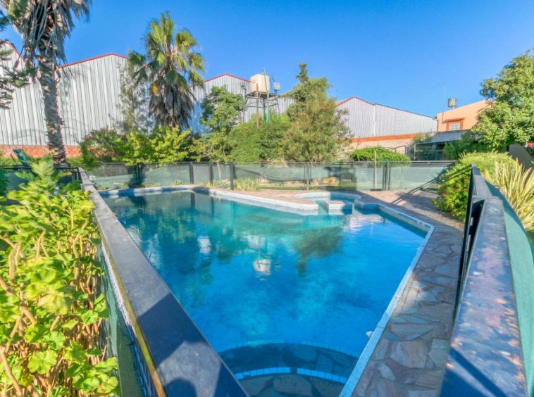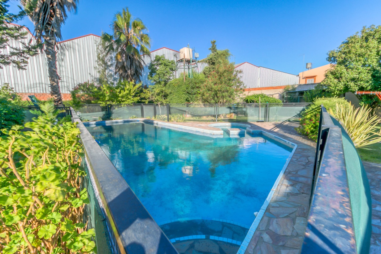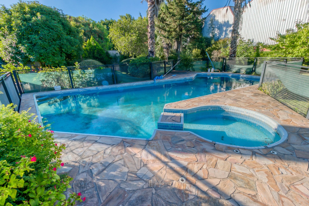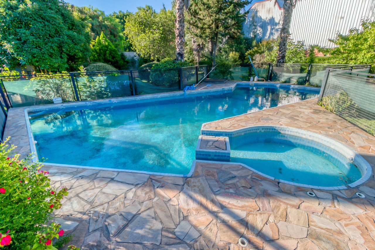 En el exterior dispone de pileta con cerco de seguridad, terreno con diversidad de arbustos y plantas; garage para vehículos o depósito.