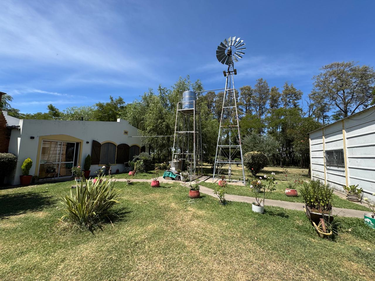 También nos encontramos con un galpón de unos 36m2 aprox, una cochera de 24m2 aprox, tanque australiano con molino en el medio del potrero, y bomba a nafta.