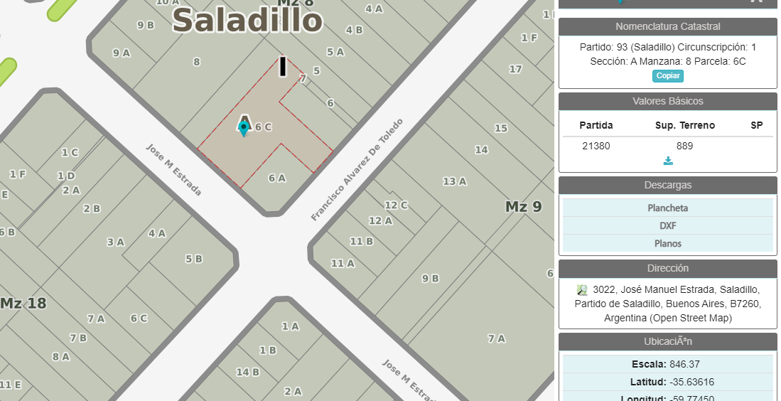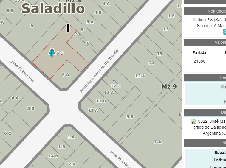 Lote ubicado en calle Estrada, entre Toledo y San Martin, de 889m2.