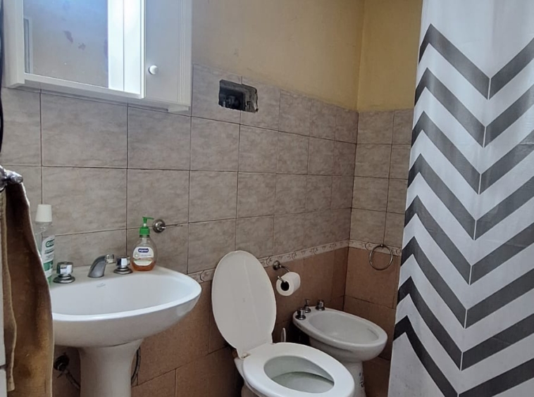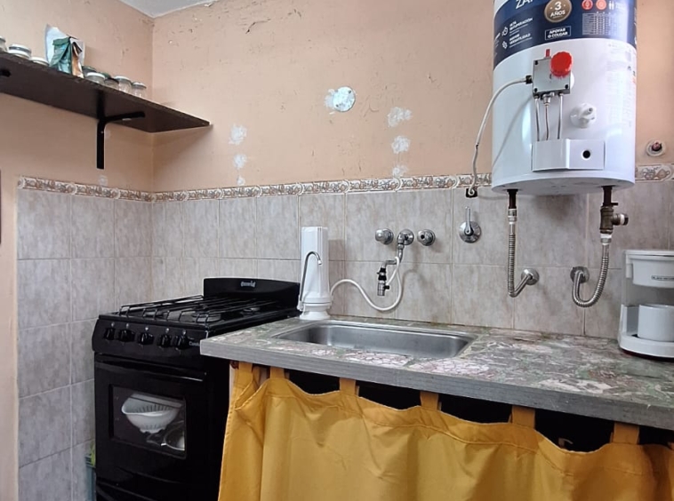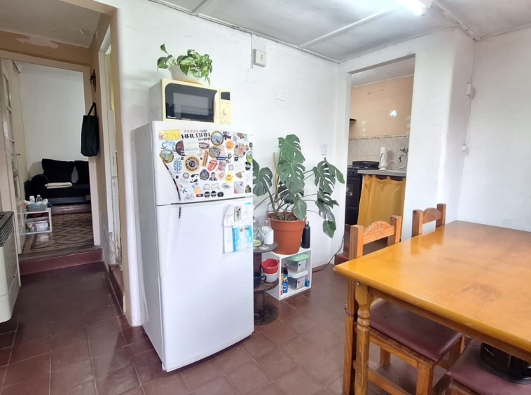 La misma se encuentra sobre un lote de 70m2, accedemos al departamento por entrada propia donde hay un pasillo en cual sirve como guardado y esta la instalación del lavarropas. Ingresamos al mismo por escalera y nos encontramos con un living/comedor y una cocina separada con un bajo mesada. Además cuenta con una habitación y un baño completo. Y cuanta con un local al frente con las mismas dimensiones que el departamento con baño propio.