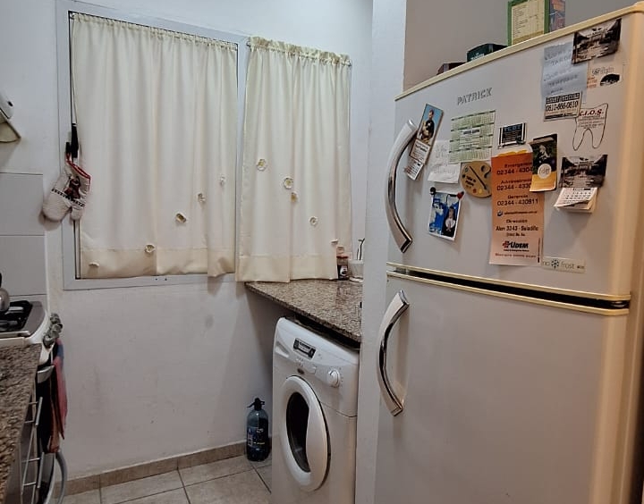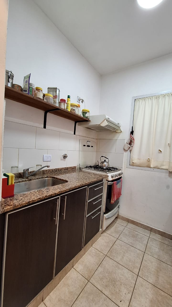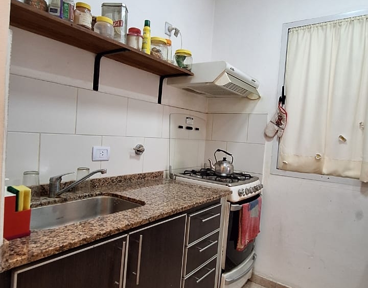 Al ingresar al departamento nos encontramos con un amplio living-comedor muy luminoso, el cual está separado por una barra de la cocina, la misma cuenta con bajo mesada.