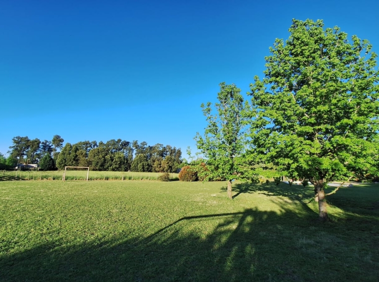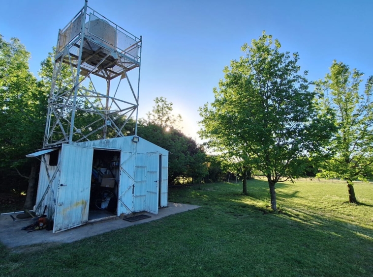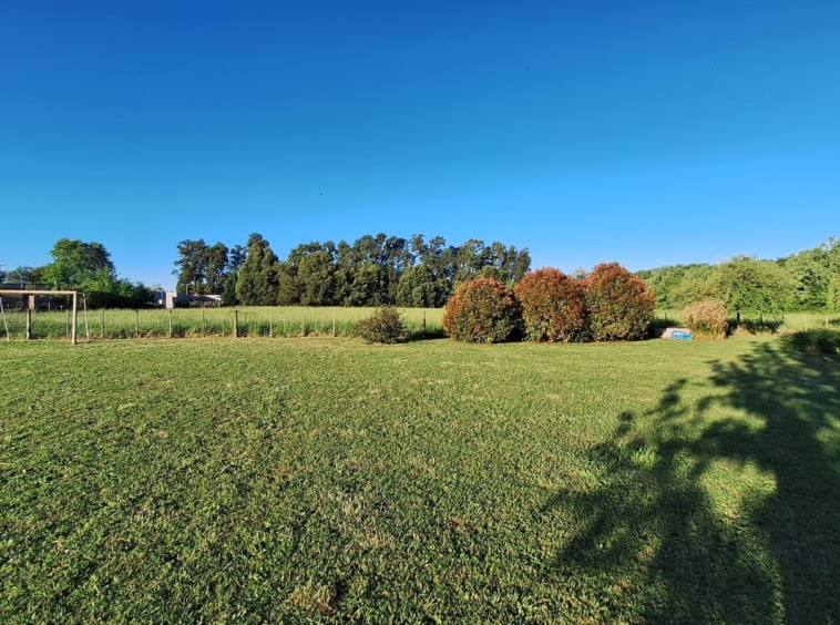 El mismo cuenta con una superficie total de 1500m2, posee una construcción de un mono ambiente de 24m2 con placar empotrado, además de un galpón metálico, el cual tiene un espacio de guardado de 2×2 y un baño de 2×1,5, con instalación de luz, agua caliente y fría, pozo de baño individual y pozo de agua.