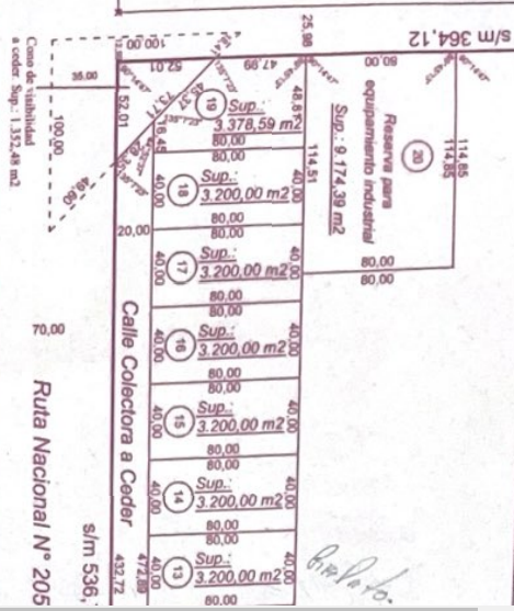 Terreno en venta, ubicado con frente a la ruta 205, el mismo posee una superficie total de 3.200m2, los cuales surgen de los 40m2 de frente por los 80m2 de fondo. La zona en cuestión es principalmente un corredor comercial-industrial, con gran llegada a gente del interior, por ser esta una ruta nacional.